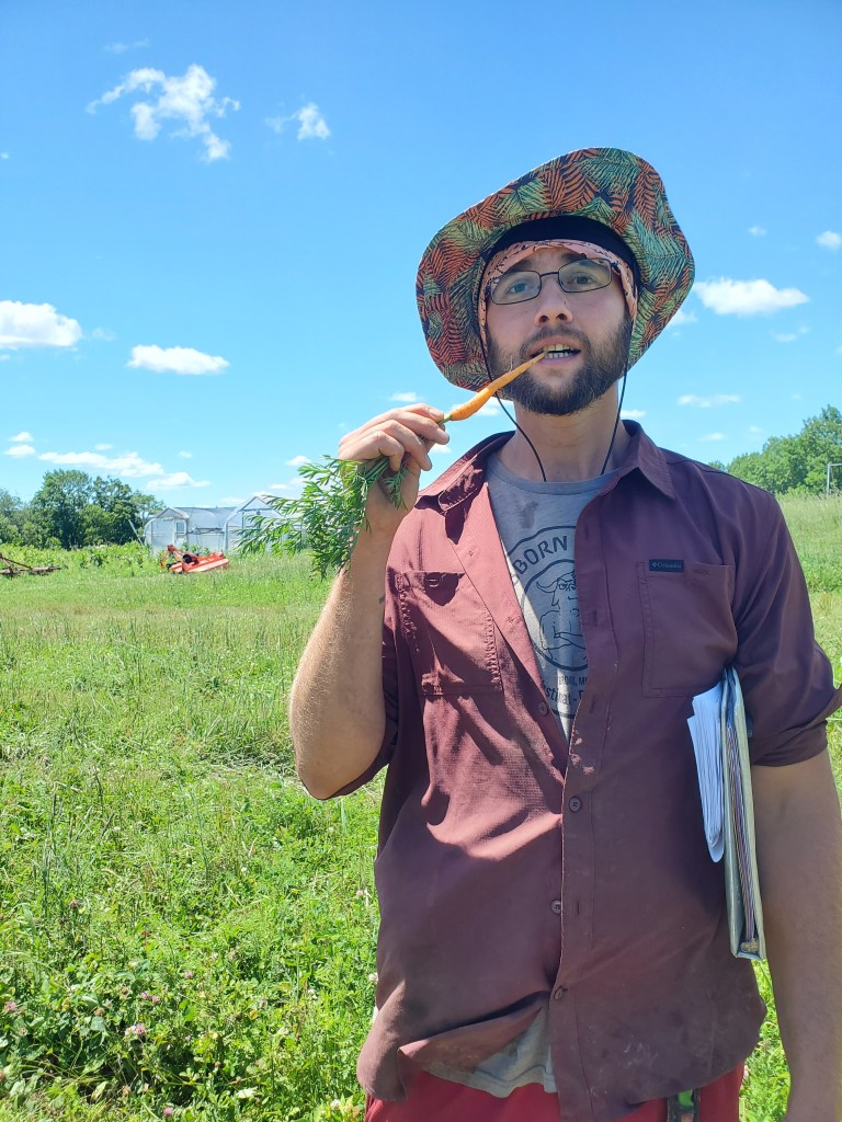 Over the course of his farming tenure, Dylan Brown has traveled from Pennsylvania to Maine, beginning his education in sustainable agriculture on the Dickinson College Farm, furthering it at Nettie Fox Farm, and applying it as Farm Manager of Dilly Bean Farm – a three year endeavor to maximize the output of an intensively managed quarter-acre vegetable plot. Experiment concluded, Dylan transitioned to being the produce buyer/supervisor at the Natural Living Center and then pursued an hourly labor position at Ironwood Farm, all in an effort to expand his understanding of the local agricultural economy. Dylan has a keen interest in plant physiology and has found farming to be a gratifying blend of practical, purposeful work and daily, trial-and-error based research. Through farming, Dylan can eat heaping platefuls of organic produce without breaking the bank, lead a rigorously active life and maintain his hard earned weight loss, and continue to grow … as a person, as an entrepreneur, and in a literal sense, continue to grow and study edible plants.