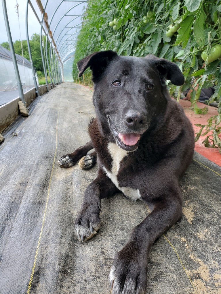 Nora specializes in behind the scene farm jobs. She excels at catching and killing voles, and occasionally gets a groundhog. She spends her days roaming the farm, warding off intruders, and napping on the porch. She enjoys digging for potatoes and running through the woods.